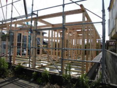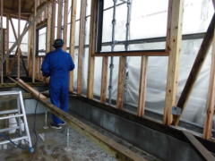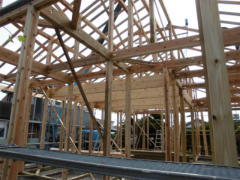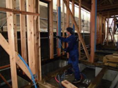 構造金物取付〜防蟻処理〜防水処理〜屋根葺き〜断熱処理(床、壁・天井)〜外壁−サイディング〜