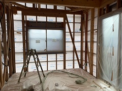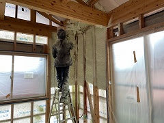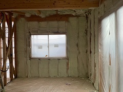 壁面・屋根裏:断熱工事(アクアフォーム)〜外壁〜内壁