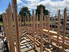 整地〜配筋〜基礎〜土台〜建て方(柱)